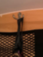 Small 'eye hooks' and a short bungie to hold the pass through open while passing items through galley.