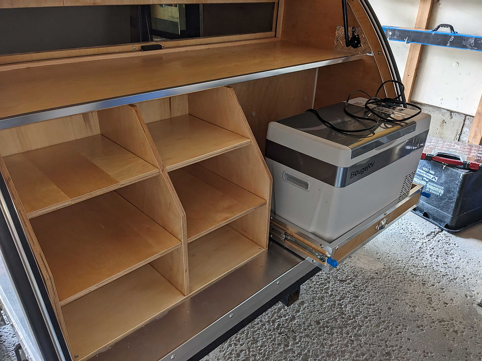 In early May there was a really good sale for the BougeRV 30 qt for $300+tax. Yes- we have a standard configuration 72inch cabin Diamond in the Rough as well. At the back, it came with a closed box mounted to the slider so cooler would go beside on t he slideout. I removed the box and cut the slider base